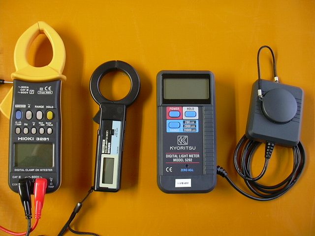 右側が共立電気計器デジタル照度計 5202 です。明るさを測定します。